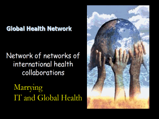 | The Global heath network is designed to link together Information Technology with Global health. We also need to recognize that Global health is interdisciplinary with people from engineering, public health, anthropology, physics, law, who are needed as much if not more than clinicians. |