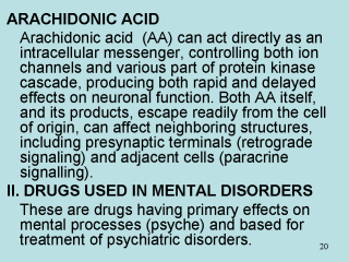 | PSYCHOSES These are severe psychiatric illness with serious distortion of thought, behavior, capacity to recognize reality and of perception (delusions ands hallucinations).There is inexplicable misperception and misevaluation; patient is unable to meet the ordinary demands of life. Acute and chronic organic brain syndromes (cognitive disorders), such as delirium, and dementia. Prominent futures are confusion, disorientation, defective memory and disorganized behavior. Functional disorders. No underlying cause can be defined; memory and orientation are mostly retained but emotion, thought and behavior are seriously altered. Schizophrenia (split mind) i.e. splitting of perception and interpretation from reality – hallucinations, inability to think coherently. Paranoid state with marked persecutory or other kinds of fixed delusions (false beliefs) and loss of insight into the abnormality. Affective disorders. The primary symptom is change in mood state; may manifest as mania (elation, hyperactivity, uncontrollable thought and speech and others) or depression (sadness, guilt, physical and mental slowing, melancholia, self destructive ideation). It may be bipolar (manic-depressive) with cyclically alternating manic and depressive phases or unipolar (mania or depression) with waxing and waning course. |