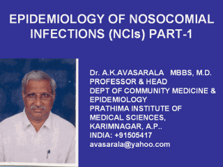control project, casualty department, divisional secondary care hospitals Then completed post graduation in public health medicine/preventive & social medicine & epidemiology and teaching medical graduates and post graduates, nursing students, physiotherapy students, primary care personnel for the last 15 years. At present working as Professor & Head of the department of Community medicine & Epidemiology since 15 years and practicing and contributing to the cause of epidemiological spread and growth in India (life ambition) as Indian super course epidemiology developer. Other sixteen super course lectures of mine can be accessed at www.pitt.edu/~super1/faculty/lecturers.htm |