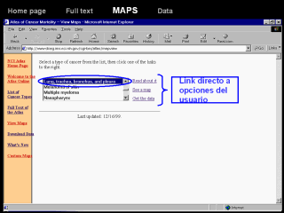 El usuario puede leer acerca de un cáncer específico o ir directamente a una tabla de mapas disponibles para ese cáncer en particular.