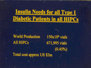 | Here is total insulin requirements for these 53000 patients. I’ve assumed that average patient need 30 units of insulin per day. These 53000 patients require 671,995 vials of insulin per year. So, 0,45% of all produced insulin will be sufficient to prevent deaths from insulin lack in all 40 HIPCs. The total cost will be about 3 million US dollars per year. |