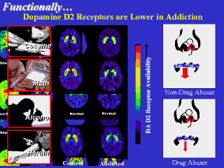 resulting from addiction to different substances. Dopamine D2 receptors are