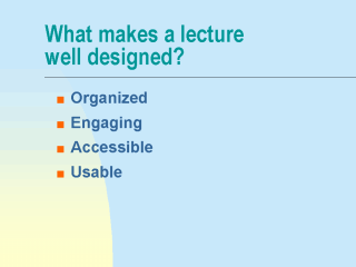 PowerPoint presentation. A good lecture is organized around specific learning objectives