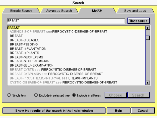 | Búsqueda MeSH Búsqueda de índice atesorado/permutado. Buscando por una palabra la cual es encontrada en la lista alfabética, junto con todos los términos incluidos con esa palabra. |