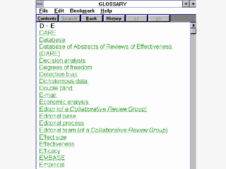 | Otros hechos/información El glosario – definiciones de términos comunmente usados en revisiones sistemáticas y por lo tanto, comunes en la Libreria Cochrane. |