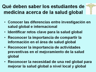estudiantes de medicina deben aprender. Salud global no es acerca de un