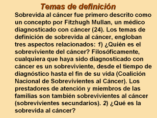 o fases de la sobrevida: aguda (extendiéndose del diagnóstico al término del
