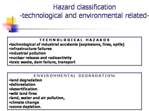 hazards. Examples include industrial pollution, nuclear release and