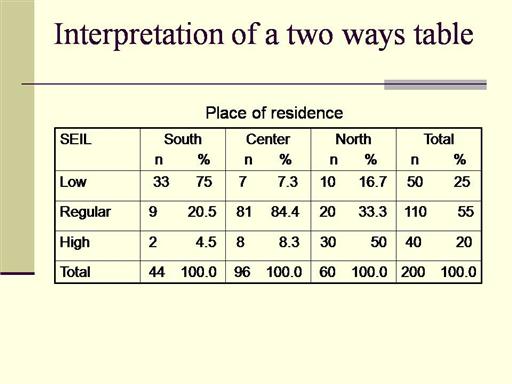 Also, we should expect than 25% of people in the South have low SEIL. 25% of 44 = 11 and should be the same for each table cell.