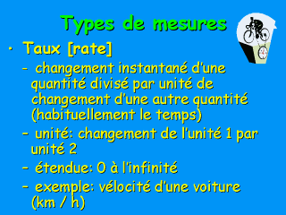temps (ex. Km/heure).