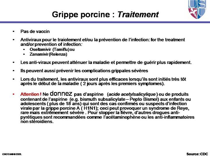 | Pour plus d’informations sur le syndrome de Reye, visitez the National Institute of Health website at http://www.ninds.nih.gov/disorders/reyes_syndrome/reyes_syndrome.htm Pour information : http://www.cdc.gov/swineflu/guidance_homecare.htm