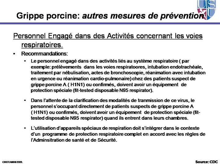 L’équipe doit être informée médicalement, bien contrôlée et entrainée pour le maniement des appareils de respiration comprenant: l’utilisation bien contrôlée des appareils de respiration, leur nettoyage, leur remplacement, et les contre-indications à leur utilisation. Toutes ces infiormations sont disponibles sur : www.osha.gov/SLTC/etools/respiratory |