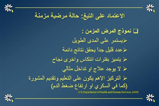 المهنيين العاملين في مجال الصحة ابعاد الطبيعة المزمنة للمشكلة الصحية يؤثر