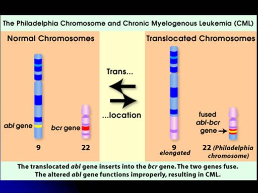 on the Ph chromosome and ABL-BCR on the chromosome 9 participating in the