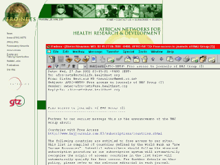 and information distribution via mailing lists, e.g. African Networks for Health Research