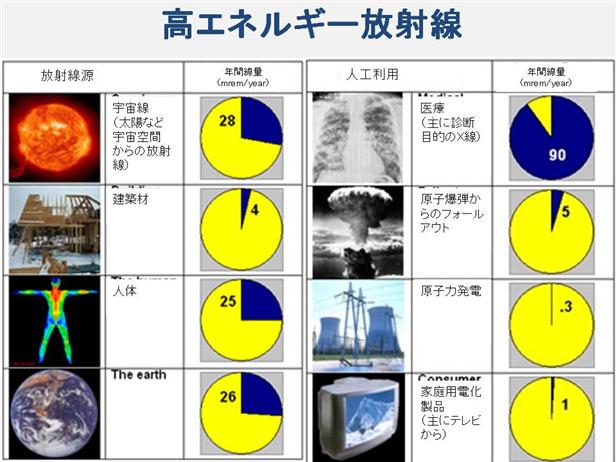 There are many sources of harmful, high energy radiation. Industrial radiographers are mainly concerned with exposure from x-ray generators and radioactive isotopes. It is important to understand that eighty percent of human exposure comes from natural sources such as outer space, rocks and soil, radon gas, and the human body. The remaining twenty percent comes from man-made radiation sources, such as those used in medical and dental diagnostic procedures. One source of natural radiation is cosmic radiation. The earth and all living things on it are constantly being bombarded by radiation from space. The sun and stars emits EM radiation of all wavelengths. Charged particles from the sun and stars interact with the earth’s atmosphere and magnetic field to produce a shower of radiation, typically beta and gamma radiation. The dose from cosmic radiation varies in different parts of the world due to differences in elevation and the effects of the earth’s magnetic field. Radioactive material is also found throughout nature. It occurs naturally in soil, water, plants and animals. The major isotopes of concern for terrestrial radiation are uranium and the decay products of uranium, such as thorium, radium, and radon. Low levels of uranium, thorium, and their decay products are found everywhere. Some of these materials are ingested with food and water, while others, such as radon, are inhaled. The dose from terrestrial sources varies in different parts of the world. Locations with higher concentrations of uranium and thorium in their soil have higher dose levels. All people also have radioactive isotopes, such as potassium-40 and carbon-14, inside their bodies. The variation in dose from one person to another is not as great as the variation in dose from cosmic and terrestrial sources. There are also a number of manmade radiation sources that present some exposure to the public. Some of these sources include tobacco, television sets, smoke detectors, combustible fuels, certain building materials, nuclear fuel for energy production, nuclear weapons, medical and dental X-rays, nuclear medicine, X-ray security systems and industrial radiography. By far, the most significant source of man-made radiation exposure to the average person is from medical procedures, such as diagnostic X-rays, nuclear medicine, and radiation therapy. http://www.ndt-ed.org/EducationResources/CommunityCollege/RadiationSafety/theory/sources.htm |