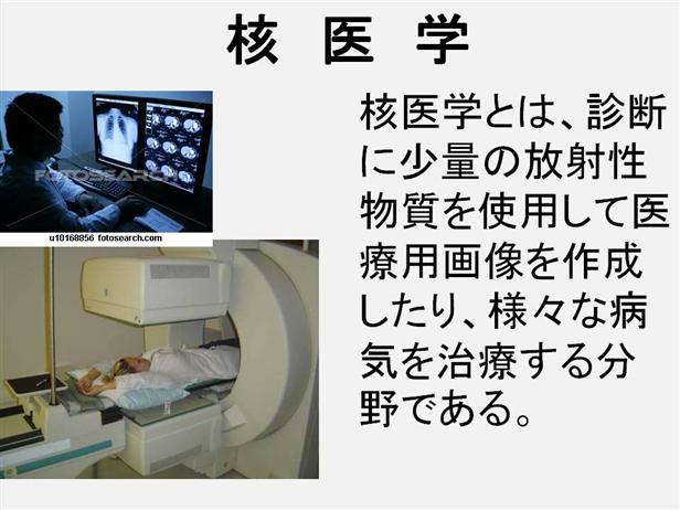 Nuclear medicine is a branch of medical imaging that uses small amounts of radioactive material to diagnose or treat a variety of diseases, including many types of cancers, heart disease and certain other abnormalities within the body. Nuclear medicine or radionuclide imaging procedures are noninvasive and usually painless medical tests that help physicians diagnose medical conditions. These imaging scans use radioactive materials called radiopharmaceuticals or radiotracers. Depending on the type of nuclear medicine exam you are undergoing, the radiotracer is either injected into a vein, swallowed or inhaled as a gas and eventually accumulates in the organ or area of your body being examined, where it gives off energy in the form of gamma rays. This energy is detected by a device called a gamma camera, a (positron emission tomography) PET scanner and/or probe. These devices work together with a computer to measure the amount of radiotracer absorbed by your body and to produce special pictures offering details on both the structure and function of organs and tissues. In some centers, nuclear medicine images can be superimposed with computed tomography (CT) or magnetic resonance imaging (MRI) to produce special views, a practice known as image fusion or co-registration. These views allow the information from two different studies to be correlated and interpreted on one image, leading to more precise information and accurate diagnoses. In addition, manufacturers are now making single photon emission computed tomography/computed tomography (SPECT/CT) and positron emission tomography/computed tomography (PET/CT) units that are able to perform both imaging studies at the same time. Nuclear medicine also offers therapeutic procedures such as radioactive iodine (I-131) therapy that uses radioactive material to treat cancer and other medical conditions affecting the thyroid gland. Nuclear medicine is a branch or specialty of medicine and medical imaging that uses radioactive isotopes (radionuclides) and relies on the process of radioactive decay in the diagnosis and treatment of disease. In nuclear medicine procedures, radionuclides are combined with other chemical compounds or pharmaceuticals to form radiopharmaceuticals. These radiopharmaceuticals, once administered to the patient, can localize to specific organs or cellular receptors. This unique ability of radiopharmaceuticals allow nuclear medicine to diagnose or treat a disease based on the cellular function and physiology rather than relying on the anatomy. Nuclear medicine is uniquely suited to tissue charac terisation, early assessment of the extent and severity of disease, and treatment of disease with specific ligands. The methods have wide clinical applications and potential for future developments, having already offered new insights in the understanding of the dementias, the spread of cancer, and the early detection of coronary-artery disease. www.thelancet.com/series/nuclear-medicine http://en.wikipedia.org/wiki/Nuclear_medicine