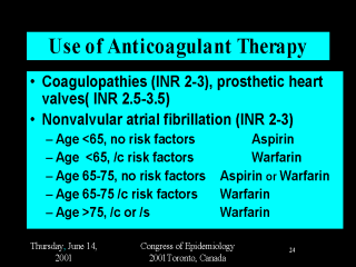 shows A FIB with INR 1.5 had 3 x stroke risk c/c INR 2.0 SPAF (Gregory W. Albers, Academy of Neurology, Philadelphia). |
