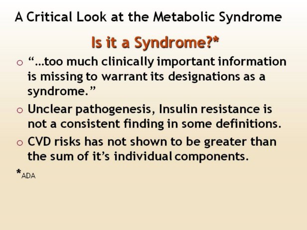 Diagnostic criteria from ATP III, WHO and IDF vary enough that different segments of populations are identified as having MS . Emphasizes the need to treat individually all components of the syndrome.