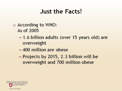 Reference: World Health Organization.(2008). Obesity and overweight. Fact sheet #311. Retrieved from http://www.who.int/mediacentre/factsheets/fs311/en |