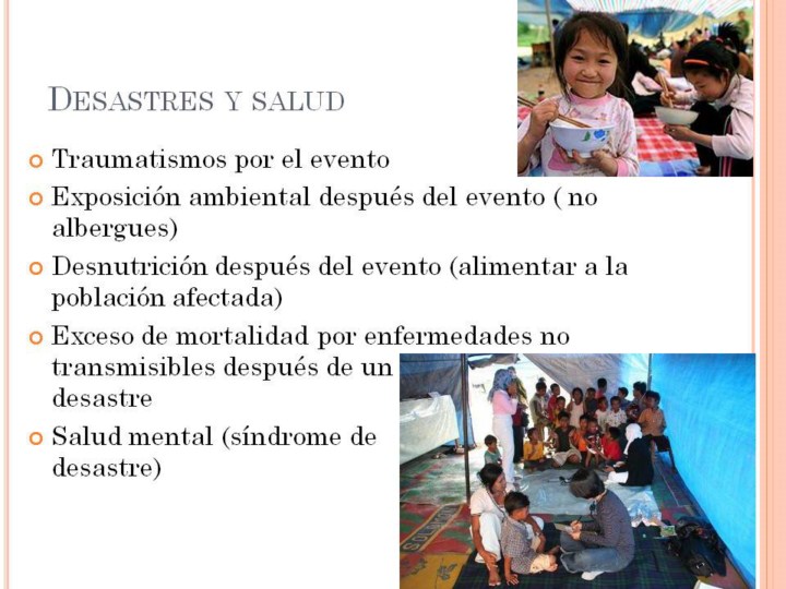 Las consecuencias de los desastres van de corto a largo plazo. Evaluación efectiva puede establecer las bases para las acciones apropiadas. Esto puede servir en disminuir la carga del desastre y fortalecer el afrontamiento. La educación en enfermería reconoce el bienestar mental por sí mismo, como un resultado, sin embargo, es también visto como la clave para el bienestar físico. |