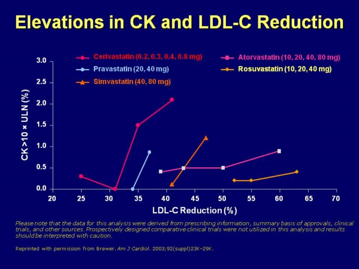 the occurrence of clinically relevant CK elevations with greater LDL-C