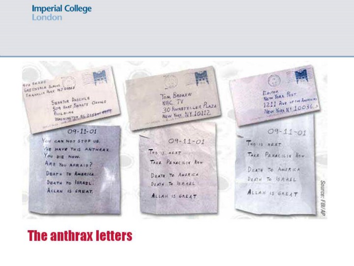 And then there was 9/11. Given the pitch of the risk discourse about the threat of a bioterrorist attack in the years and months leading up to September 2001, it is perhaps not surprising that the US authorities’ attention was initially focused elsewhere when a more low-tech, but equally stunning attack occurred. Just minutes after planes crashed into The World Trade Center, the National Guard was mobilized to test the air for biological or chemical agents (Sarasin, 2006). None were found, but within a week the anthrax letters had been posted and a new era had dawned, one in which the long anticipated but hypothetical threat of bioterrorism had become a ‘reality’.