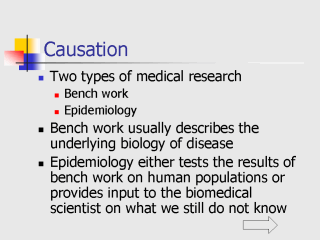 control the environment the experiment is taking place in - Control for diet, and environment Animal is in 2. Epidemiology cannot directly control for a human subjects environment - Therefore Epi uses certain methods to study illness among populations and attempts to control for differences in the individual study subjects “environment” - We do this using a combination of Methods of Study design and Statistical analyses |