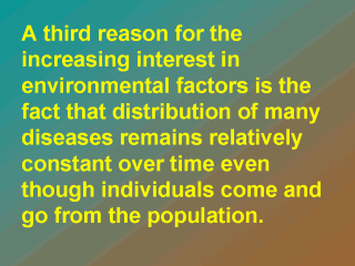 The constant rate of certain diseases suggest that there is something about the environment that elicit a characteristic rate of disease in different population group.