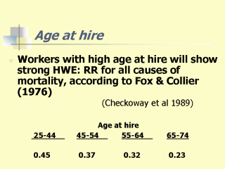 | Workers with high age will be highly influenced by selective processes. becauser, the proportion of persons attaining the required level is likely to be smaller in the old age group. |
