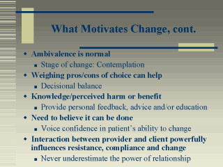 Weighing the pros and cons of change can be a powerful tool for moving someone forward (change depends on the pros of change outweighing the cons).