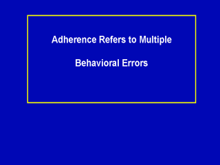 | When we look at these patterns and project them beyond medication to other kinds of regimens as well, we can now say that adherence really refers to multiple behavioral errors. It is not a matter of whether somebody is doing it or not doing it. |