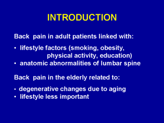 lumbar spine – scoliosis or spondylosis. Back pain in the elderly is much more likely to