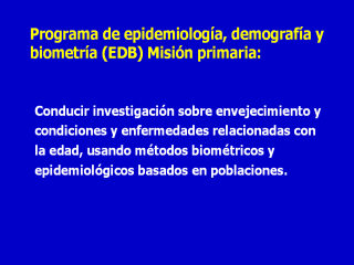 epidemiología, demografía y biometría, y sirve como la fuente federal
