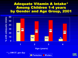 and 4-years of age, the percentage with adequate vitamin A intake was much less for each
