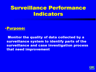 indicators. These indicators help us identify parts of our surveillance system and case