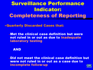 laboratory testing and incomplete case follow-up. This surveillance performance indicator