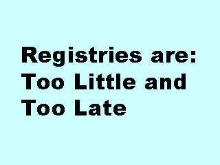 Another difficulty with registries is that typically they have such a small coverage, and they are slow to determine the incidence of disease sometimes decades after the incidence changes occur, are they noticed. |