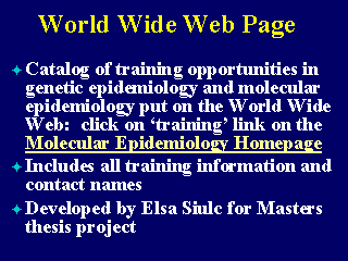 Trining Opportunities in Genetic Epidemiology and Molecular Epidemiology