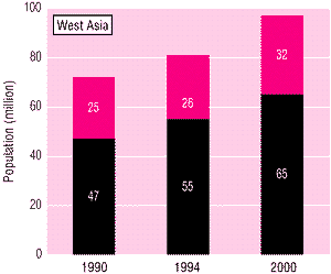 2000 for developing countries, by each major region and in total. In unserved areas faeces
