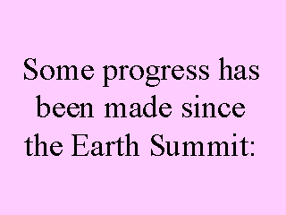 Agenda 21 initiatives being created, especially in cities, but also