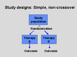 In the basic, non-crossover design, participants are randomized to one treatment and followed until the outcome is observed. This is the simplest approach; however, other types of trial design are widely used for specific situations. |