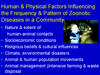 Disease surveillance is designed to measure the frequency of zoonotic diseases in a population, indicate the need for intervention, and to evaluate the impact of control programs. Epidemiologic studies (case-control, cohort) are often used to identify the risk factors for zoonotic disease transmission.