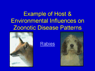 The following three slides illustrate differences in rabies epidemiology in developing and industrialized regions. Identification: Rabies is an almost invariably fatal, acute viral encephalomyelitis. The disease progresses to paresis or paralysis; spasm of the swallowing muscles leads to fear of water (hydrophobia); delirium and convulsions follow. The usual duration is 2-6 days, sometimes longer; death is often due to respiratory paralysis.