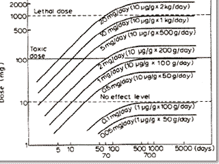 for methymercury in man The accumulation of methylmercury in human body increases rapidly until about the 350th day (5 times the biological half-life), beyond which time accumulation stops its rapid increase. Then the intake and excretion of methylmercury become equally. (Kitamura 1971) |
