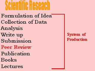 This represents a system of production of a scientific journal from the creation of an idea to lectures. Peer review is one major component of this system.
