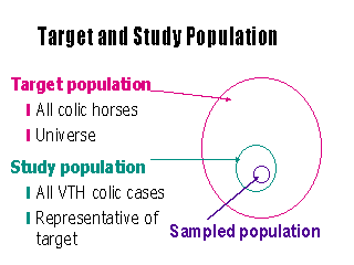 The same sampling process is now represented as a Venn Diagram. Validity refers to the criteria used to define the study population from the target population. Precision is a statistical issue and therefore related to the statistical procedures used to select the population. |