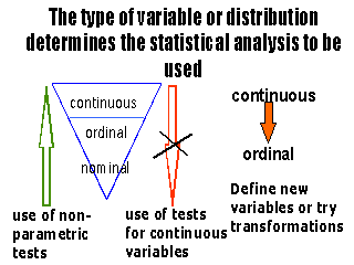 You CANNOT use tests developed for continuous data with ordinal or nominal variables.