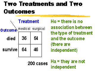 Two by two tables are epidemilogists' best friend! In this example we compare how horses do when treated medically or surgically.