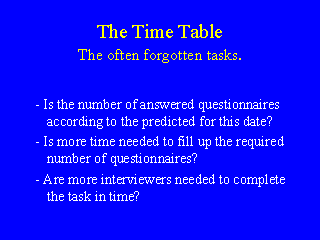 the checking of the time table. Is the number of questionnaires completed in agreement to